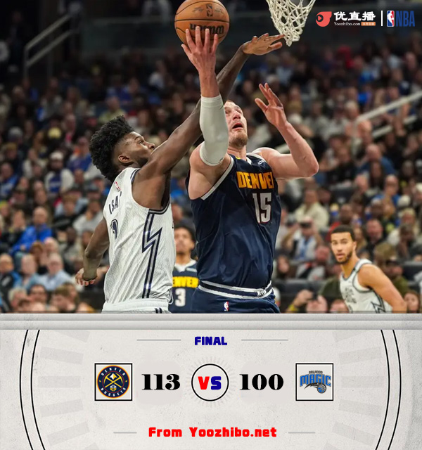 24直播网讯 北京时间1月20日讯 NBA常规赛,魔术主场迎战掘金,魔术目前2连败后23胜20负排在东部第7位,掘金则是25胜16负排在西部第4位。比赛开始,魔术上来打出8-3不错开局,随后约基奇开启进攻模式带队追分,但魔术全民皆兵回应首节保持微弱领先,次节魔术接连三分命中,一波13-4小高潮直接拉开双位数领先,但穆雷接连中投带队咬住比分,随后约基奇接连罚球反超比分,半场掘金反超2分。下半场,掘金众将开始发力,小波特里突外投得分上双,布劳恩接连反击,掘金拉开双位数领先,随后穆雷里突外投连砍10分,掘金三节领先到16分,约基奇三节又达成三双,末节戈登里突外投带队拉开20分以上领先,随后双方换替补练兵,最终掘金113-100轻取魔术,送对手3连败。