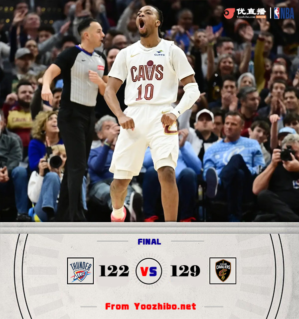 24直播网讯北京时间1月9日讯 NBA常规赛焦点大战,骑士今日迎战雷霆,两队分别占据东西部榜首的位置,前者十连胜对阵西部球队10-0,后者则是15连胜对阵东部球队11-0,此役卡鲁索缺战。比赛上来,骑士率先进入状态打出6-0的开局,不过雷霆迅速就追了回来,在19-19平后雷霆连拿七分取得领先,米切尔首节4中0没有得分入账,雷霆上场八名球员全部拿到分数,次节骑士的进攻终于打开,单节轰下37分,米切尔在7中0后也终于用扣篮开张,半场结束时雷霆被反超3分;下半场回来,亚历山大早早领到个人第四犯,不过双方的攻势都很盛,单节打出43-41的比分,分差也是一直未能拉开,比赛悬念保持到了最后,关键时刻骑士双塔连续站出来得分,加兰挑篮再进杀死比赛,最终骑士力克雷霆,延续了自己11连胜并对西部球队的不败势头,同样也终结了后者15连胜和对东部球队的不败纪录。