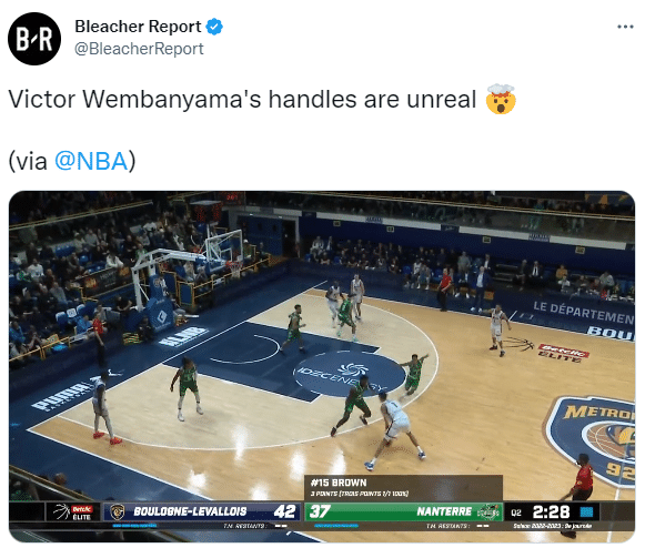 下半场,大都会92队第三节被疯狂追分,文班亚马仍旧在禁区接连送出大帽;末节关键时刻,文班亚马篮下轻松扣篮、禁区抛投、底线突破上篮以及最后时刻扣篮终结比赛,末节独砍15分带队拿下胜利。