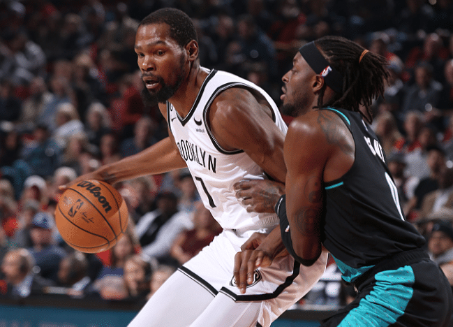 末节,杜兰特杀到禁区摔出底线仍打成2+1,之后暴扣虐筐,篮网和开拓者打得十分僵持,渡边关键轰进三分打停开拓者;最后3分多钟,开拓者执行砍人战术,渡边雄太再次立功,31.8秒杜兰特撞倒格兰特吃到进攻犯规,杜兰特两罚一中,杜兰特犯规被努尔基奇打成2+1,杜兰特错失绝杀但奥尼尔绝杀,最终篮网惊险拿下胜利。