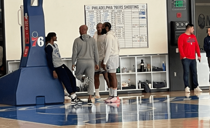 76人随队记者Ky Carlin报道,哈登已经脱掉保护靴,并参加了今日的投篮训练,但暂时还未参与对抗训练。