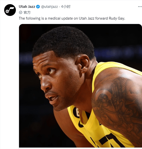 爵士官方宣布球队老将鲁迪-盖伊因为左手中指关节扭伤,将在两周后再进行重新评估,至少伤停两周;本赛季盖伊场均为爵士出战5.8分钟,贡献4.5分3.4篮板。