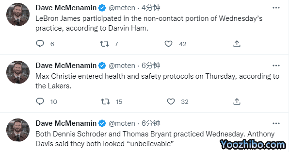 赛季至今,布莱恩特与施罗德多因拇指韧带撕裂的伤病未参加过比赛,此前湖人将他们与纳恩一起下派到南湾湖人进行训练,目的是帮助他们找状态。