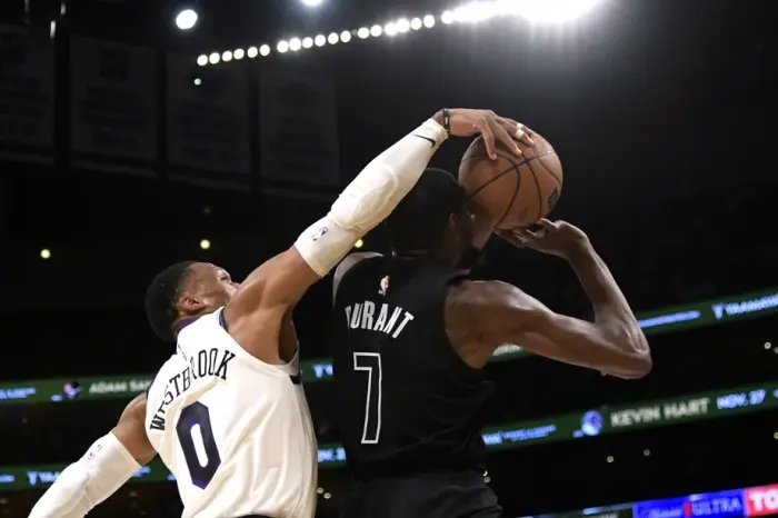 值得一提的是,湖网大战杜兰特和威少上演大哥和二弟之间的互帽,赛后杜兰特表示威少一直都会来打击我,自从我们18、19岁时开始就像这样了,和他较量总是很有趣,不管是在什么场合都是如此。