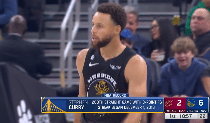 来源:24直播网11-12 16:0624直播网讯11月12日,NBA常规赛勇士击败骑士,库里全场出战34分钟23投15中、三分11中6拿到40分4篮板5助攻,末节库里坐场边扭动大笑,最后78秒连得10分统治比赛,疯狂庆祝点燃球馆,全场高呼MVP;库里又迎来里程碑时刻,常规赛连续200场投进三分继续刷新历史第一纪录。