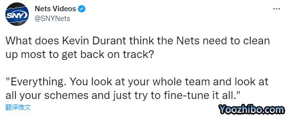 纳什执教能力确实有限,篮网队的问题也很多,对于球队如何才能重回正轨,杜兰特表示:一切都需要。你得看看整个球队和球队所有的计划,然后试着做出调整。