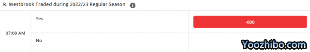 关于威少的两大交易赔率已经出炉。第一项是关于威少会不会在2022-23赛季被交易,会的赔率是-600,不会的赔率是+350。显然外界更看好威少在本赛季离开湖人。第二项是关于威少下家的最新赔率,具体赔率排名如下:1.步行者(+150)、2.黄蜂(+200)、3.马刺(+300)、4.爵士(+600)、5.鹈鹕(+800)、6.太阳(+1000)、7.篮网(+1200)。外界最看好威少的下家是步行者。