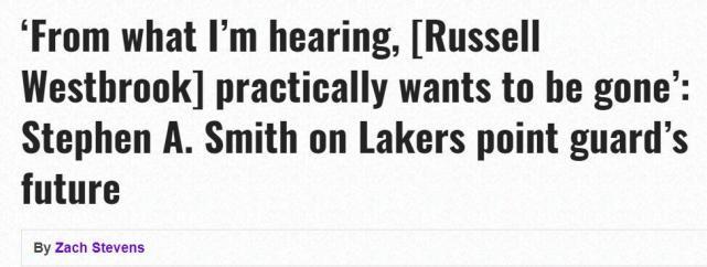 赛季至今,威少打了3场比赛,场均10.3分6.7篮板5.3助攻,投篮命中率28.9%,三分命中率低至8.3%。美媒认为,威少表现糟糕,不少湖人球迷都希望他尽快被交易,现在A-史密斯爆料称,威少本人也想离开湖人了。