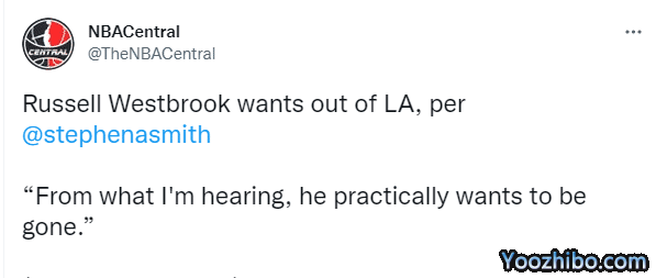 自从加盟湖人之后,威少因表现不佳以及与詹姆斯、浓眉不搭而备受争议,今年休赛期,湖人曾尝试交易威少,但最终交易谈判都以失败而告终,因为佩林卡不想在威少交易中送走两个首轮选秀权;新赛季至今,湖人战绩糟糕,威少的表现同样十分糟糕。