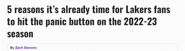 来源:24直播网10-23 21:5324直播网讯10月23日,2022-23赛季刚开始,湖人遭遇两连败,暂列西部倒数第一。美媒Lakers Daily悲观地认为湖人这个赛季又没戏了,并列出了五条理由——