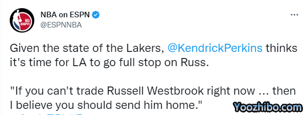 对于湖人两连败以及威少的糟糕表现,名嘴帕金斯直言湖人该弃用威少,他在节目中表示:如果你现在不能交易威少,那么我相信你应该把他送回家。