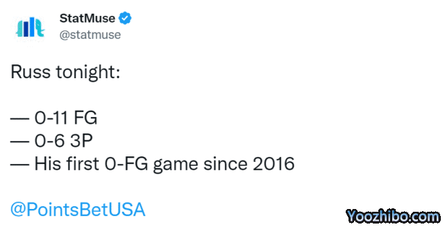 对此,名嘴Skip更推写道:“有意思的是,威少从不以防守著称,他只是全力防守莱昂纳德。也许他刚刚被换下场是因为投篮11中0。”