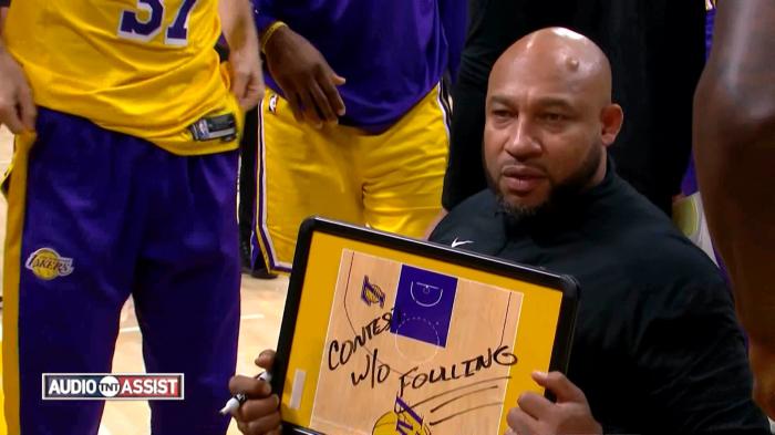 末节,詹姆斯在场上和卢指导聊天,之后湖人再次反击,一波12-2反超比分,朗尼-沃克的表现十分出色;之后快船反扑,8-2重获领先,詹姆斯下场休息;威少上场后连续两次抢断,最后4分钟,詹姆斯回来,持球撞倒小卡被吹进攻犯规,威少躲闪让小卡走步违例,湖人连续三分打铁,一番对战,最终输掉比赛,湖人开赛两连败。