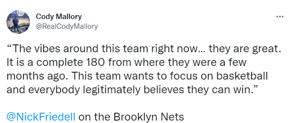 据美记者 Nick Friedell报道,目前勇士这支球队的氛围非常好。与几个月前相比,这完全发生了180度大变样,现在这支球队希望专注于篮球,每个人都相信他们能赢。