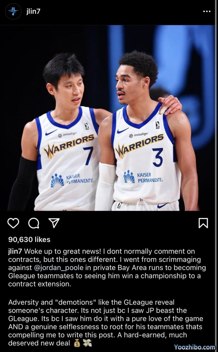 林书豪恭喜普尔续约:赢得总冠军并与勇士签下大合同 这都是他应得的