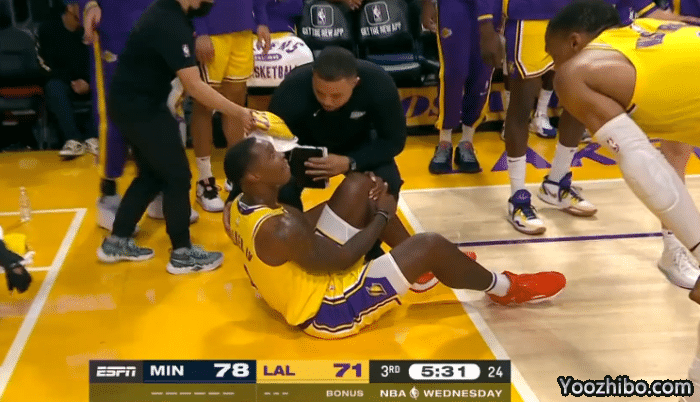 第三节5分31秒,贝弗利在防守时和安德森相撞,贝弗利倒地时压到了朗尼-沃克的腿,沃克的膝盖扭了一下,之后沃克坐在地板上捂着膝盖,威少站在沃克身旁十分担忧沃克的伤情,湖人队医第一时间过来检查沃克的膝盖,随后沃克有些一瘸一拐,离场返回更衣室。