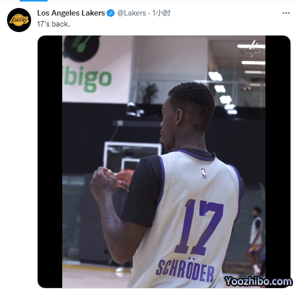 值得一提的是,湖人官推专门晒施罗德归队训练的画面,配文写道:17号回来了。