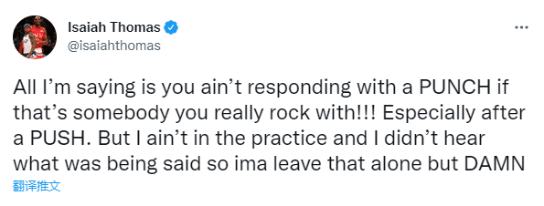 小托马斯发推:如果那个人是你兄弟,那你就不会用一拳来回应,尤其是在你已经推了他之后。但我也没有在现场,也没有听到他们说了什么(才引起争吵),所以我不再做评论。真该死!