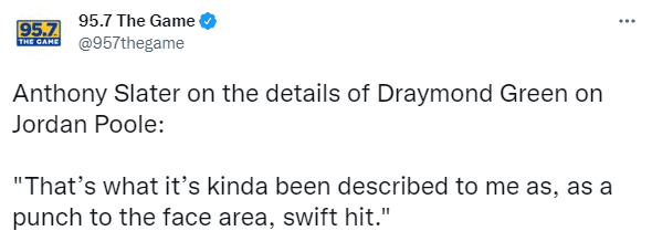 根据之前的报道,格林和普尔在训练时发生口角,然后升级到相互撞胸,最终格林用拳击打普尔导致冲突升级。