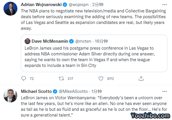 詹姆斯表态想在赌城拥有一支NBA球队 盛赞文班亚马是一代天才