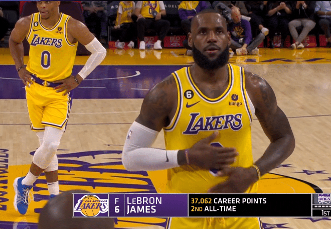 首节比赛,威少开场突破上篮,浓眉助攻纳恩轰进三分,浓眉背打福克斯并且转身跳投,威少持球强突福克斯,杀到禁区达成2+1,此时威少做出经典的哄娃娃庆祝动作;威少助攻纳恩轻松上篮,湖人12-3梦幻开局打停国王;威少侵略性十足,老詹还没开始发力。