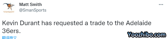 太阳不敌NBL球队引热议,有球迷表示阿德莱德36人队该加入NBA;杜兰特躺枪,美记者Matt Smith发推写道:杜兰特应该会请求被交易到阿德莱德36人。(今夏杜兰特曾申请被交易到太阳,最终杜兰特离队失败,继续留守篮网)