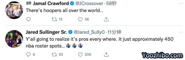 前NBA球员贾马尔-克劳福德发推写道:全世界都有(出色的)篮球运动员。
