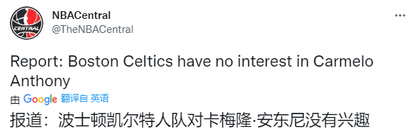 Brian Robb表示:卡梅隆-安东尼是本周的热门话题,上周凯尔特人对他感兴趣的流言开始流传,但是多个联盟消息人士表示,凯尔特人队预计不会有兴趣在训练营之前引进这位老将,目前安东尼不是绿军优先考虑的人选,不过这并不是说球队已经在季前赛之前完成了阵容的塑造。