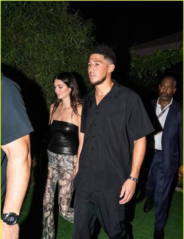 布克和詹娜都身穿了黑色吊带的衣服,詹娜上身了无吊带皮革紧身衣,非常凸显她的傲人身材,而下半身则是身穿花纹透视长裤,脚踩高跟凉鞋,一身穿搭相当的吸引眼球。而布克则是延续了以往的风格,黑色立领外套,黑色西装裤黑皮鞋,两人走在一起也是相当的般配,布克算是年轻一代球星当中最会穿搭的球员了,他的风格偏休闲,也是深得球迷们的喜爱,而詹娜就更不必说了,无论是性感还是正式穿搭她都能驾驭。