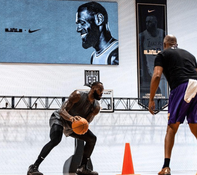 詹姆斯创新中心位于俄勒冈州的耐克全球总部,整体占地将近7800平米,这其中包括了一座詹姆斯专属的NBA标准篮球场,球场中央印着詹姆斯的个人logo,还印着詹姆斯生涯至今的重要荣誉,比如入选全明星次数(18次)、常规赛MVP(4次)、FMVP(4次)和总冠军次数(4次)。