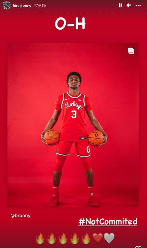 布朗尼的动态不禁令人猜测他将决定加盟俄亥俄州立大学,此前詹姆斯作为家长陪同布朗尼参观了俄亥俄州立大学,期间布朗尼拍摄了身穿该大学篮球队球衣的定妆照;他们还观看了俄亥俄州立大学橄榄球的揭幕战,詹姆斯父子轰动现场,现场更是有球迷高呼:我们要布朗尼。