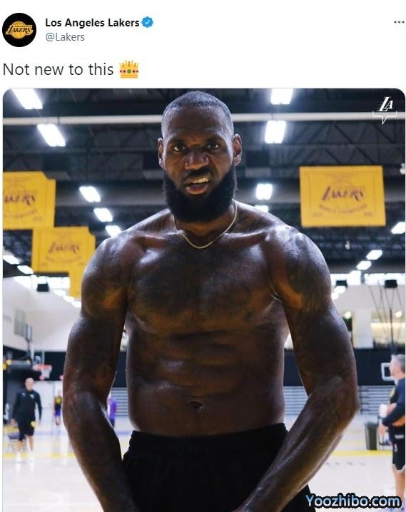 湖人官方晒詹姆斯赤膊训练照,配文写道:对此并不陌生(王冠表情);37岁詹姆斯露出歪嘴表情,肌肉线条明显,尤其是腹肌,这身材保持得太好了,体脂率大概为5%,不愧为联盟自律的典范。