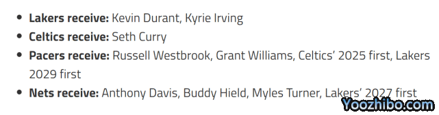 美媒晒4队8人大交易方案:湖人造新三巨头 浓眉去篮网威少入步行者