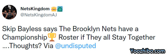现在,篮网并没有打算降价出手杜兰特,即便那可能要冒着杜兰特缺席训练营的风险。蔡崇信依然期望杜兰特和欧文能够留下队内继续效力,特别是杜兰特,他们之前还签有4年合同。名嘴Skip在最新一期的节目里看好篮网,认为篮网已经打造了冲冠阵容,当然前提是核心都能留下。