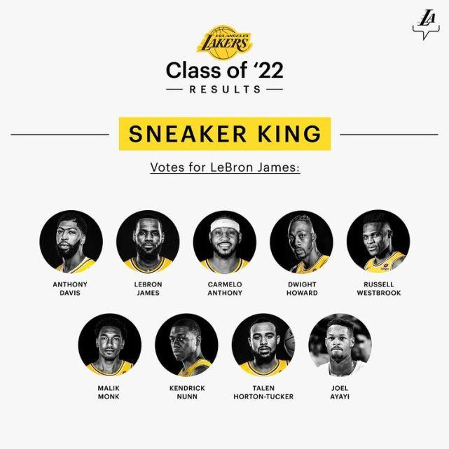 湖人票选队内10大奖项!詹姆斯9票当选鞋王,浓眉甜瓜更衣柜最乱?