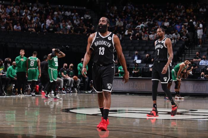 上赛季,篮网和火箭完成一笔大交易,引援哈登打造豪华三巨头,哈登为篮网出战36场常规赛,场均上场36.6分钟拿到24.6分8.5篮板10.9助攻1.28抢断和0.75盖帽,由于遭遇伤病,哈登缺席了很多比赛,早早无缘MVP争夺;季后赛场均拿到20.1分8.6助攻6.3篮板,带伤复出的状态不佳,最终篮网3-4不敌篮网止步东部半决赛。
