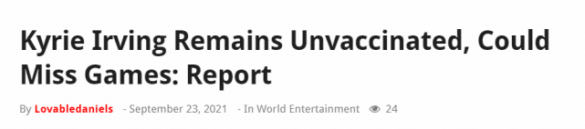 欧文的情况和维金斯类似。维金斯也尚未接种疫苗,而勇士所在的旧金山地区同样有相关规定,这也让维金斯可能因此缺席勇士主场的比赛。维金斯每缺席一场比赛,将损失35万美元,欧文若缺席比赛,也会有不少薪水的损失。