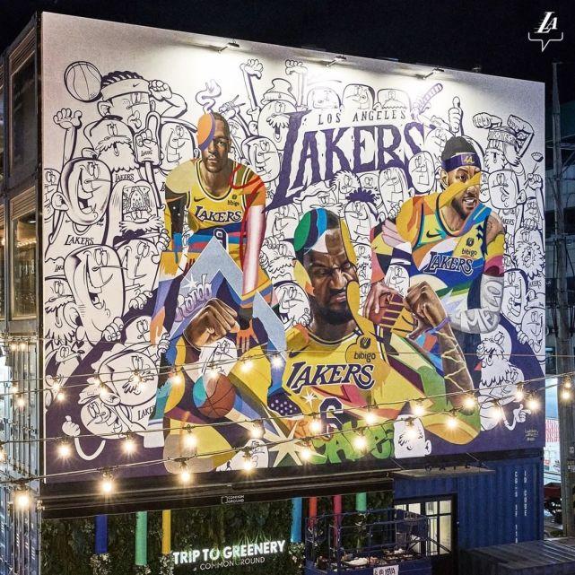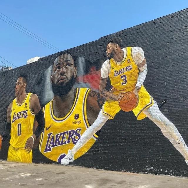 湖人官方晒两大主题壁画!三巨头霸气上线,安东尼朗多也现身