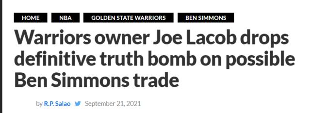 勇士不要西蒙斯!老板亲自发话:他工资高不投篮,我们有追梦干嘛要他?