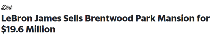 据报道,这是詹姆斯在该富人区所拥有的两套豪宅之一,他已经好几年没有住在这里了,因此詹姆斯决定卖掉该豪宅;六个月前詹姆斯挂牌2050万美元出售,如今最终以1960万美元成交。