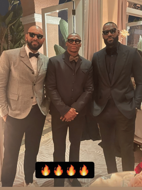 不久前,詹姆斯和威少在训练后一起出席浓眉的婚礼,两人都是盛装亮相,尤其是和杜德利合影,墨镜帮上线了;若杜德利还在湖人,估计又要被调侃这才是湖人三巨头。