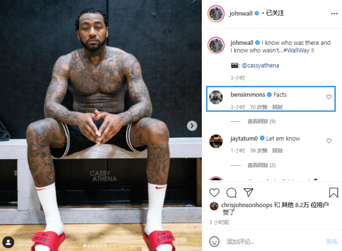 西蒙斯也在现场,他和沃尔的关系很不错,此前沃尔晒出赤膊训练照,西蒙斯在评论区留言:事实。