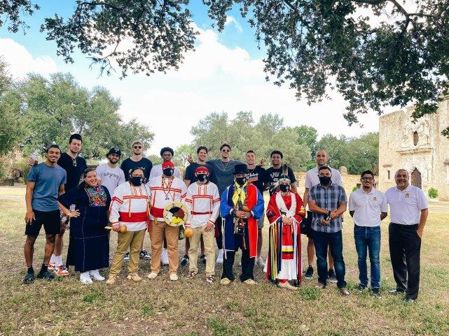 吉诺比利为啥突然出现在马刺球馆呢?原来,他最近在执行马刺委派给他的一项任务,带着队内的年轻人逛逛圣安东尼奥,了解这里的风土人情。