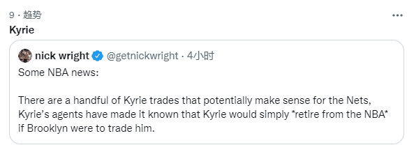 热议!欧文经纪人回应交易流言,强硬态度曝光:篮网交易他就退役