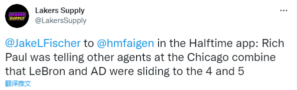 来源:24直播网09-16 10:5524直播网讯9月16日讯 ,湖人两大巨头詹姆斯和浓眉新赛季的位置曝光,据NBA记者JakeFischer报道,关于湖人首发阵容,他们的经纪人里奇-保罗在芝加哥联合试训期间告诉其他经纪人,詹姆斯将改打四号位,戴维斯会改打五号位。