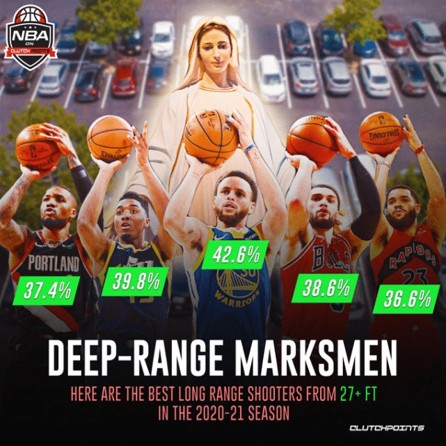 来源:24直播网09-14 15:1624直播网讯9月14日讯 ,美媒clutchpoints公布了一组2020-21赛季超远三分命中率的排名和数据。这里对超远三分的定义是出手距离至少是27英尺(约8.23米)以外,而NBA目前三分线离篮筐最远的是7.25米,最近是6.7米(两个底角)。