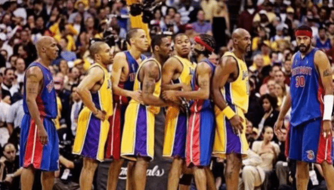 活塞五虎聚首;他们是2004年那支平民军团的核心成员,昌西-比卢普斯、理查德-汉密尔顿、泰肖恩-普林斯、拉希德-华莱士为自己的兄弟而来,本-华莱士入选名人堂,这也是活塞五虎中第一个入选名人堂的球员。在2004年,并不被人看好的活塞击败了拥有F4的湖人,在拉里-布朗的带领下拿下冠军。拉里-布朗今天也是本-华莱士的名人堂引荐人。