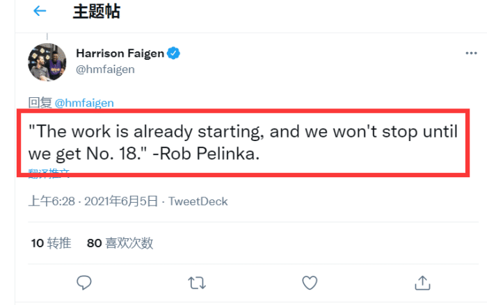 虽然湖人的赛季才刚刚结束,但对于管理层来说,工作才正式开始,佩林卡表示重建从今天起就开启了,球队会永不停歇直到拿下队史第18座总冠军。