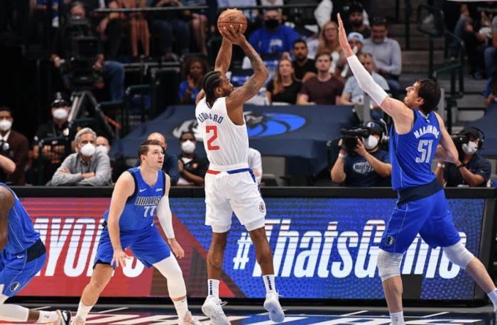 到了第四节,经过短暂休息的莱昂纳德和东契奇几乎同时登场。而这一节,莱昂纳德完全爆发,他单节5中5轰下12分,将自己最终的得分定格在45分。最后3分钟,莱昂纳德连续中投加两记三分球,直接打垮了独行侠。
