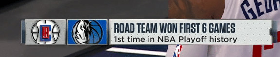 双方3-3战平后,前方也给出数据,这是NBA季后赛历史上第一次出现前6场比赛都是客场球队获胜的状况,球迷们习惯了听到“主场优势”,而在这一轮系列赛里却是真正的“客场优势”。